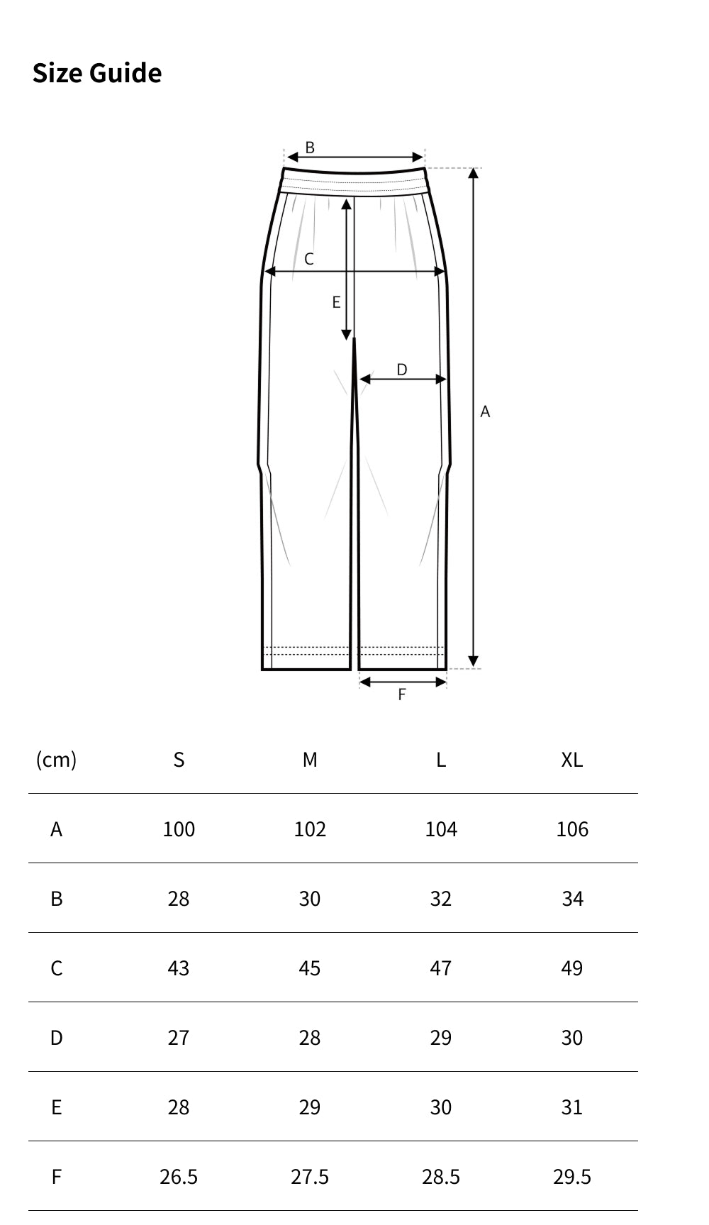 Size Chart 尺寸參考